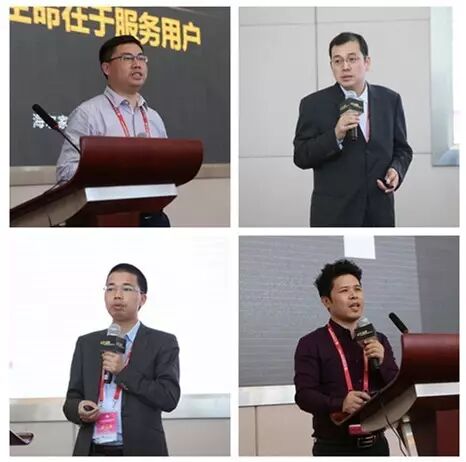 海尔集团孙鲲鹏(左上)、谷尼国际软件邹鸿强(左下)、北京交通大学经济系书记兼副主任、中国交通运输经济研究中心副主任李红昌(右上)、北京第二外国语学院梁昊光教授(右下)做主题演讲
